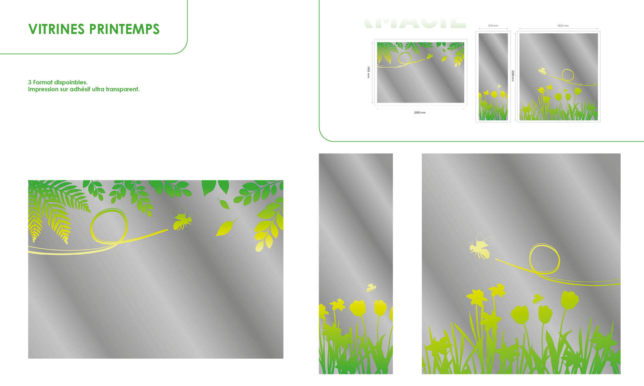 De plus, nos vitrines théâtralisées saisonnières captivent l'imagination de vos clients. Elles créent une ambiance printanière et agréable. L'objectif est de susciter l'enthousiasme et renforcer le lien avec votre clientèle.